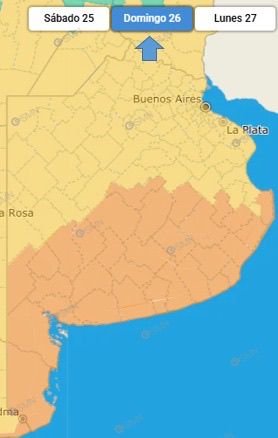 En paralelo, desde la zona de Mar Chiquita hacia el sur de la costa bonaerense rige una alerta amarilla por lluvias, con chaparrones intermitentes y acumulados de entre 15 y 30 milímetros.