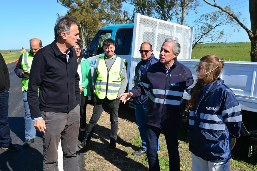 El ministro de Infraestructura y Servicios Públicos, Gabriel Katopodis, junto al presidente de AUBASA, José Arteaga, y los intendentes de Tordillo, Héctor Olivera, y de Dolores, Patricio García, recorrieron las nuevas obras en la Ruta 63, entre ambos municipios.