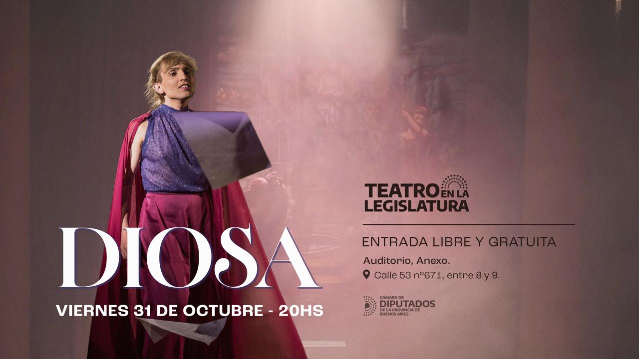 A las 20 hs., en el Auditorio se desarrollará la obra de teatro “Diosa”, de Ámbar Vega y con la dirección de Paula Baró y Antonella Querzoli.