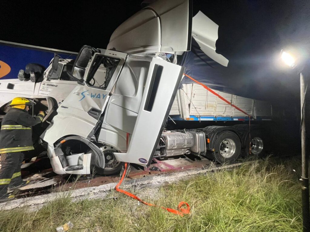 El siniestro involucró tres camiones y, según las primeras informaciones, el impacto inicial se produjo cuando un camión Volvo (dominio MNH 665) fue colisionado desde atrás por un Mercedes Benz (dominio OCE 324). En este último vehículo viajaban dos personas: el acompañante, un hombre de 58 años, quedó atrapado en el habitáculo y murió en el lugar a raíz de las graves lesiones sufridas.