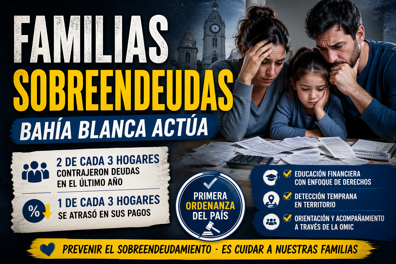 El Honorable Concejo Deliberante de Bahía Blanca aprobó este jueves 23 de abril una ordenanza que crea el Programa Municipal de Prevención y Abordaje Integral del Sobreendeudamiento Familiar, una iniciativa que busca dar respuesta a una problemática extendida en la ciudad. Dos de cada tres familias contrajeron deudas el último año.